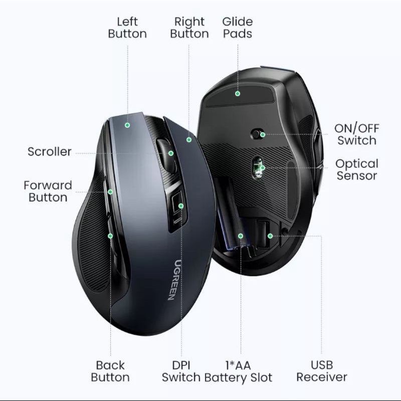 UGREEN Mouse Wireless Bluetooth Silent Click Ergonomic Slim