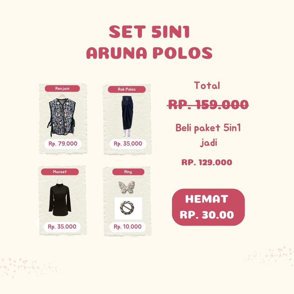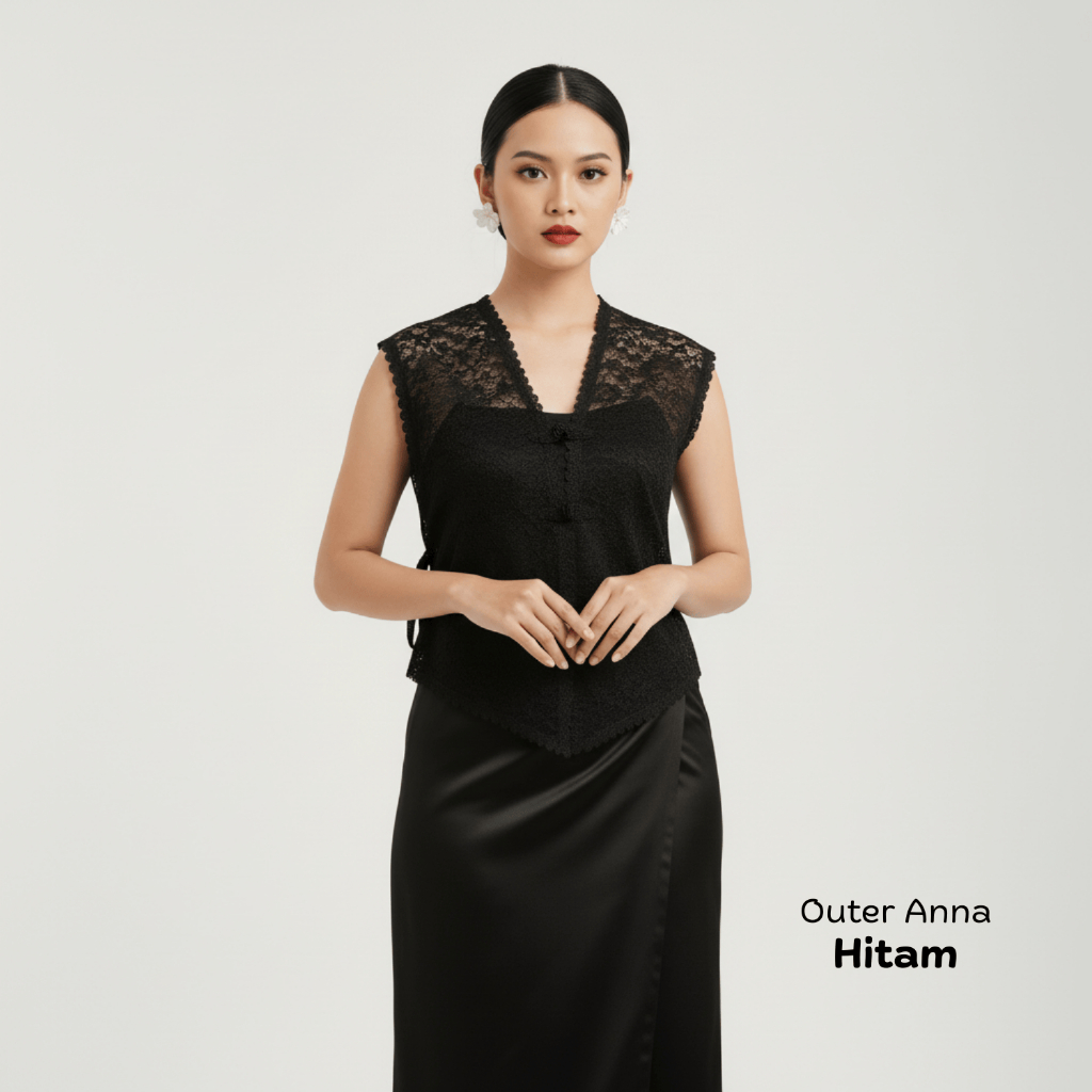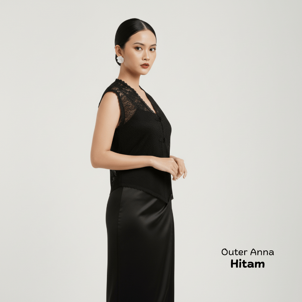 (Paket 5in1) Oneset Vest Brukat ANNA Outer Tile Garden Rok Lilit Satin Polos Baju Kondangan Wanita Hitam Setelan