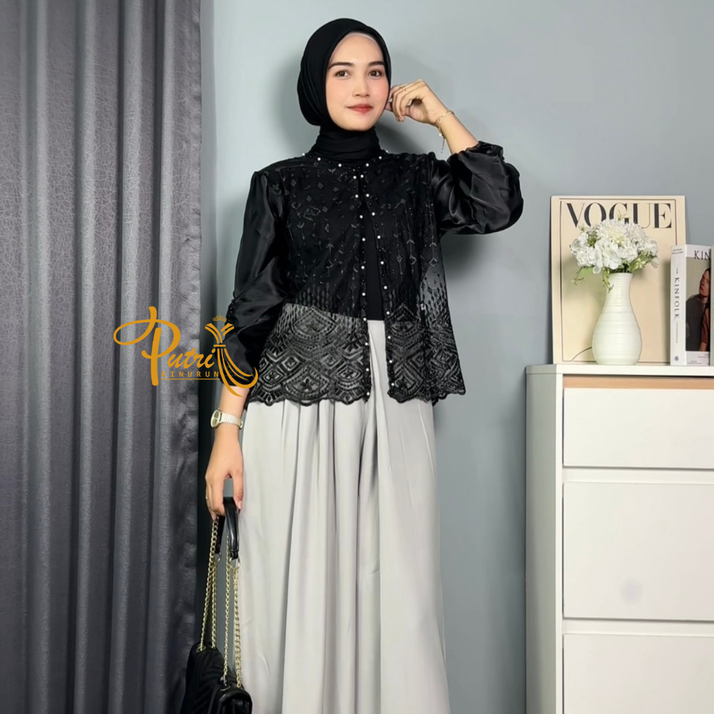 Outer Brokat Crop Brukat Sapto Organza Kondangan Lebaran Wisuda Kekinian Mewah Bordir Bunga Premium