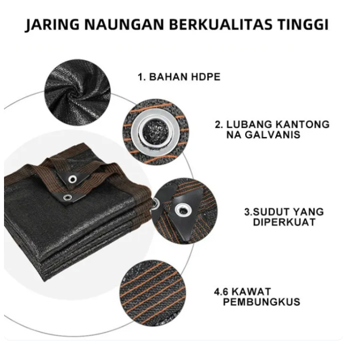 Paranet 99% Lebar 3/4/5 Meter Shading Net Nylon Anti Panas Enkripsi 12-pin Jaring Paranet Pelindung Tanaman Dari Matahar