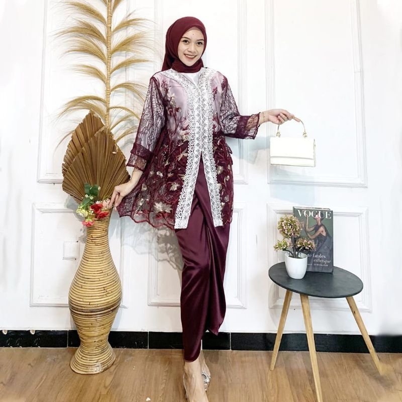 (Termurah) Oneset Brukat Maiza Setelan Kondangan Rok Lilit Baju Pesta