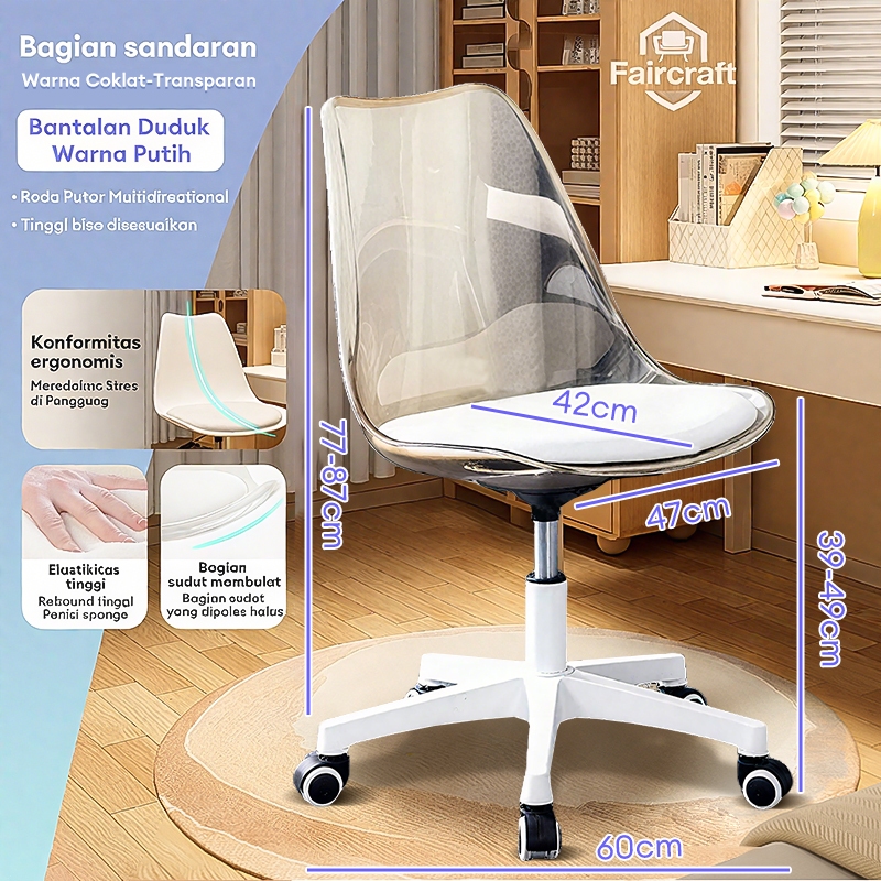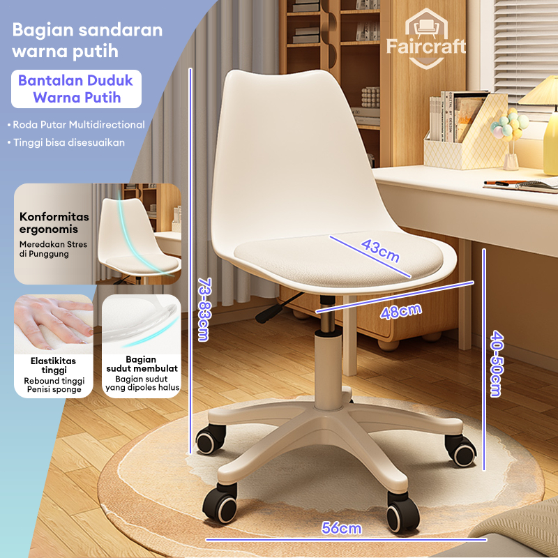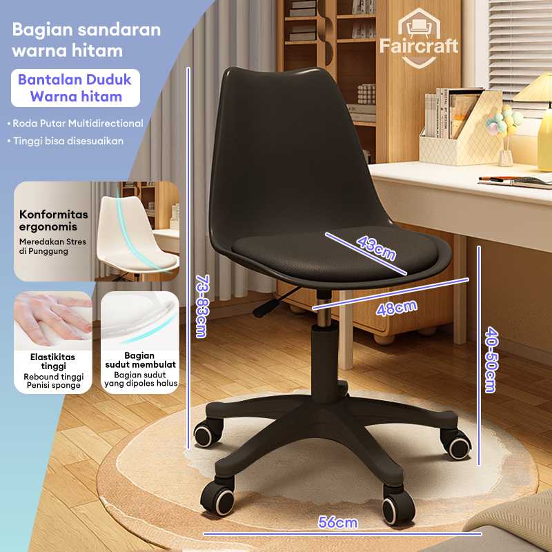 Kursi Kantor Putar Kursi Belajar Kursi Kerja Kursi Cafe Adjustable Kursi Ergonomis Hidrolik Putar 360°