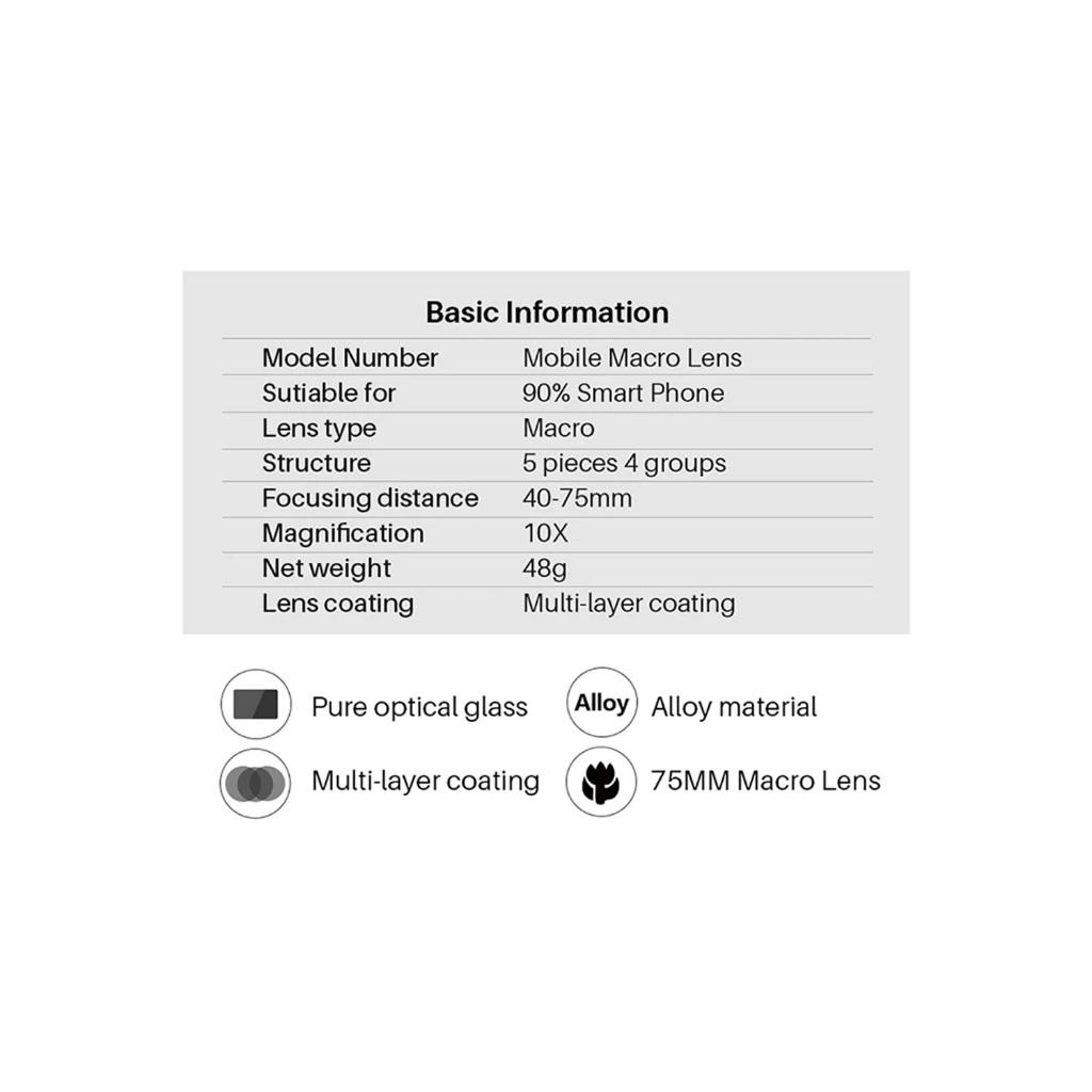 ULANZI 75mm 10x Macro Lens for iPhone and Android [4075mm]
