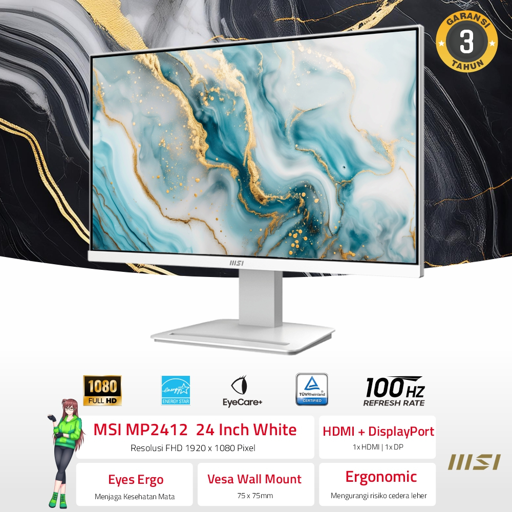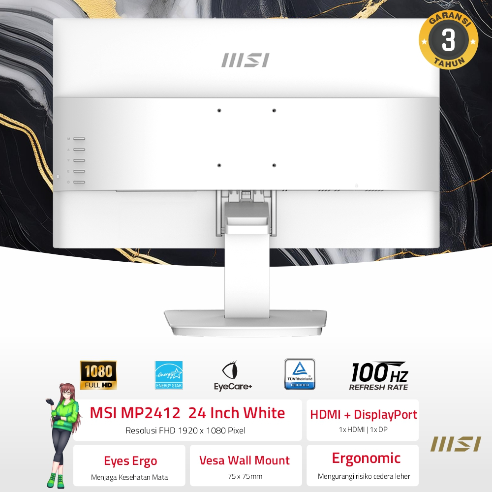 Monitor MSI MP2412W 24" 100Hz Full HD 1ms 110 PERSEN sRGB HDMI DisplayPort Monitor Putih