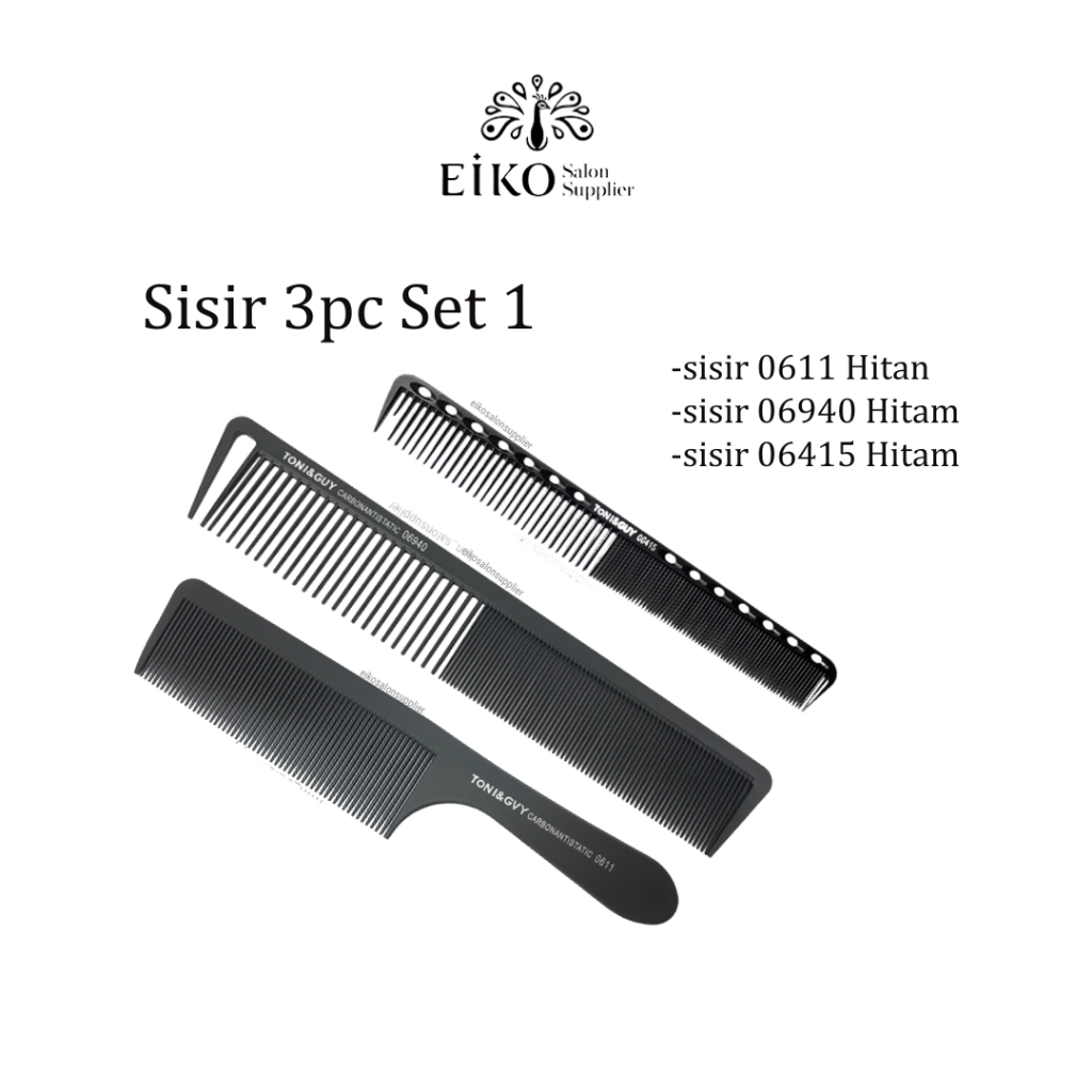 Paket Sisir Rambut Toni&Guy Hitam Potong Pangkas Salon Barbershop Set 3pc