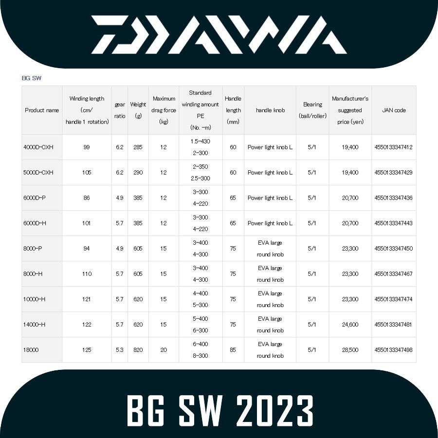 Reel Daiwa BG SW 2023 |4000D-CXH|5000D-CXH|6000H|8000-H|8000P|
