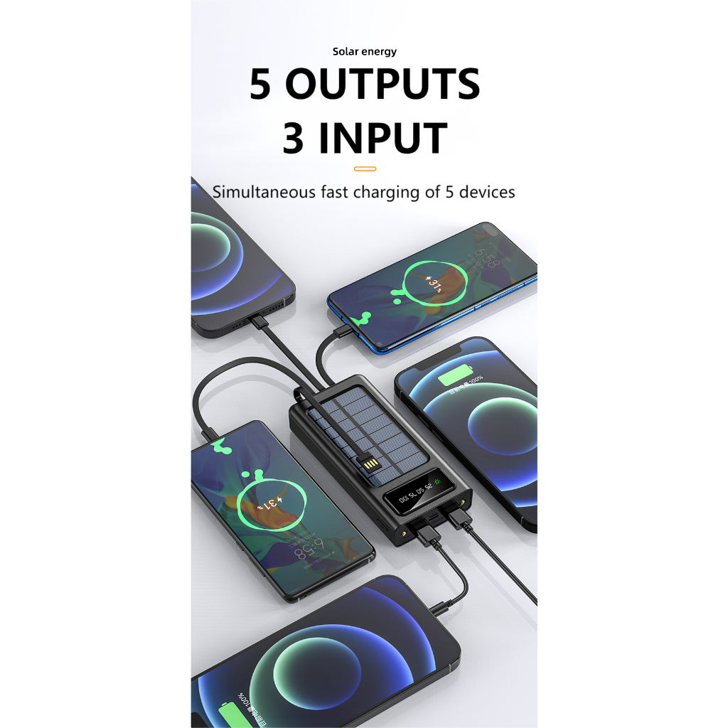 HESTER 80000mah power bank solar powerbank original power bank 100000mah powerbank robot 2USB ports built-in 4 cable pow