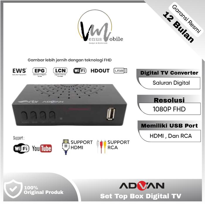 Advan Digitv Stb Digipro Fullhd Av Receiver Dvb T2 Digital Tv Converter Set Top Box - Advan, Stb Only