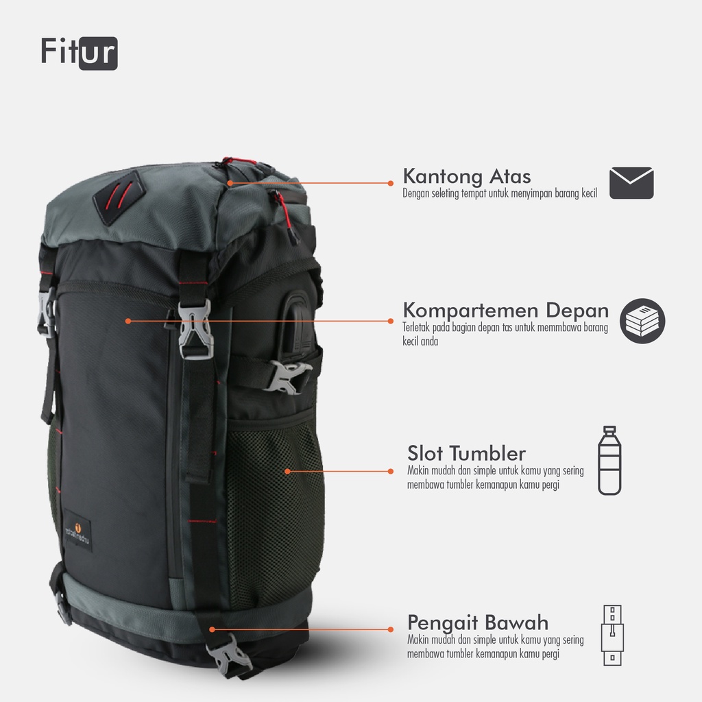 Tas ransel Backpack urban factor - Ace Brill - Tas laptop Travel Backpack Pria