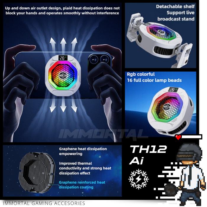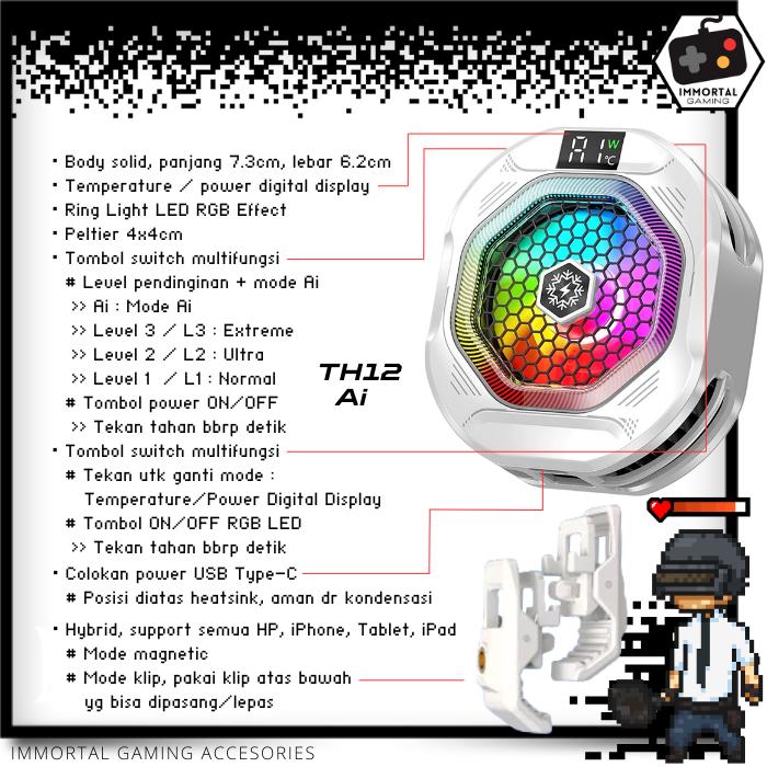[Im] Th12 Ai Hybrid Funcooler 24W Magnetic Backclip Kipas Pendingin Untuk Hp Iphone Ipad Tablet Fan Cooler Gaming - Puti
