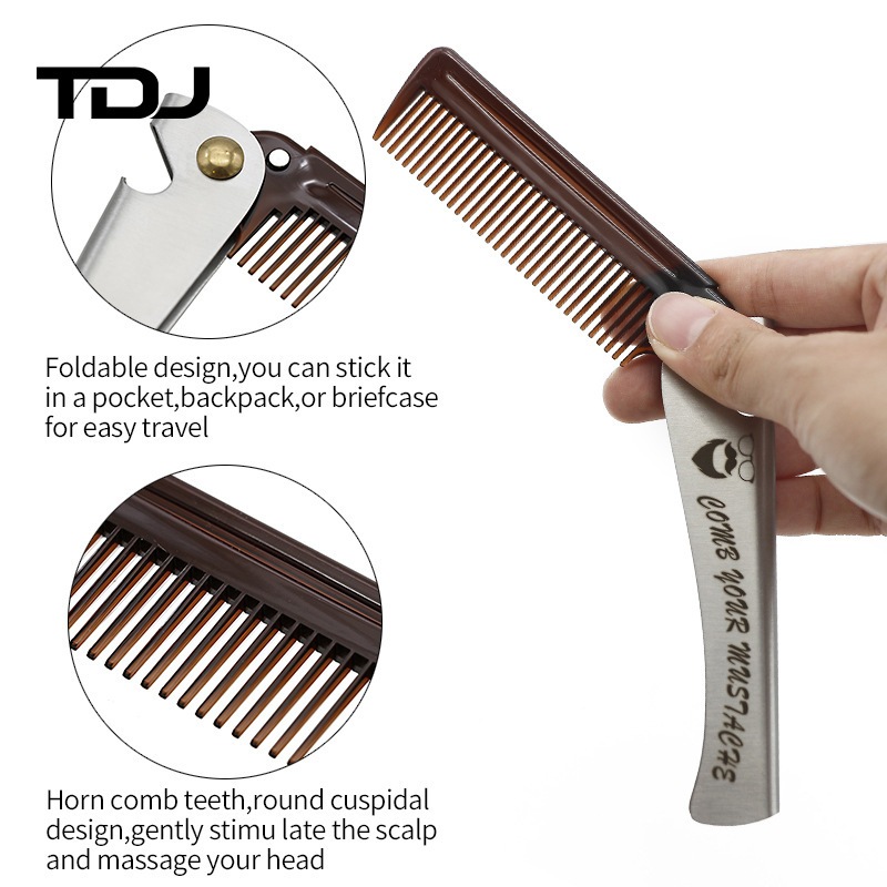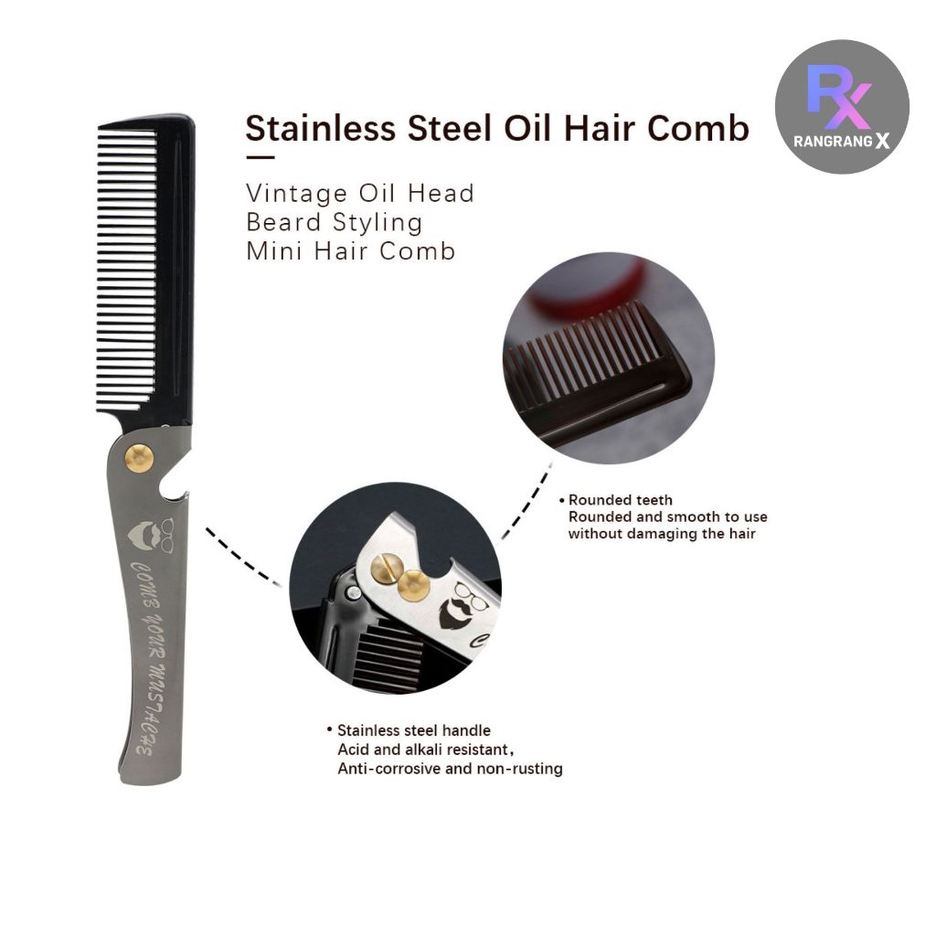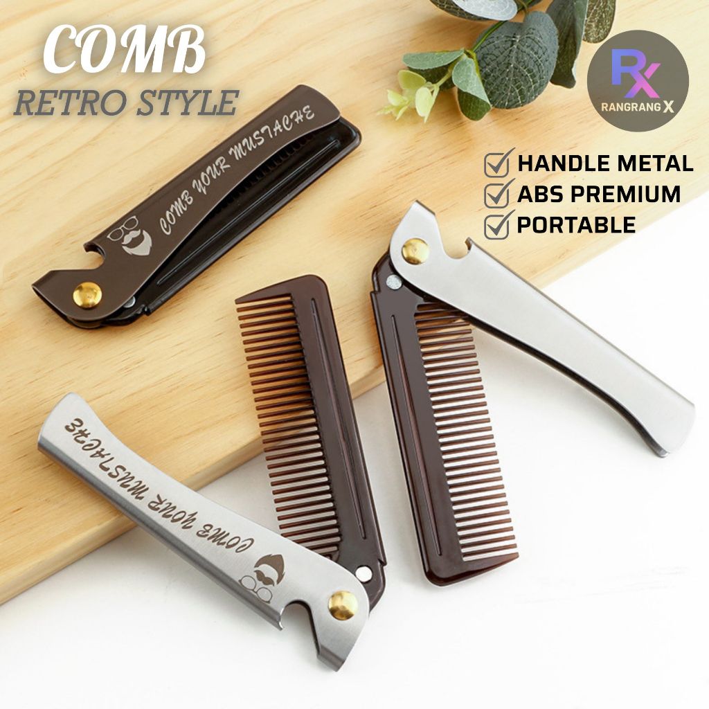 Sisir Rambut Lipat Pria Portable Gagang Stainless Steel-Retro Style Maskulin&Elegan