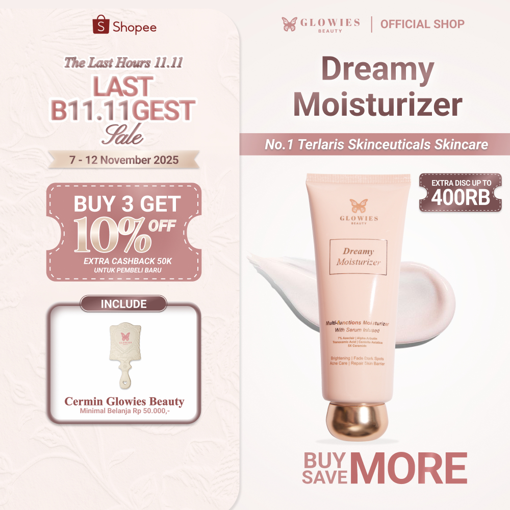 FLASH SALE GLOWIES BEAUTY DREAMY MOISTURIZER SKINCARE REPAIR SKIN BARRIER MELEMBAPKAN DAN MEREDAKAN JERAWAT TERLARIS