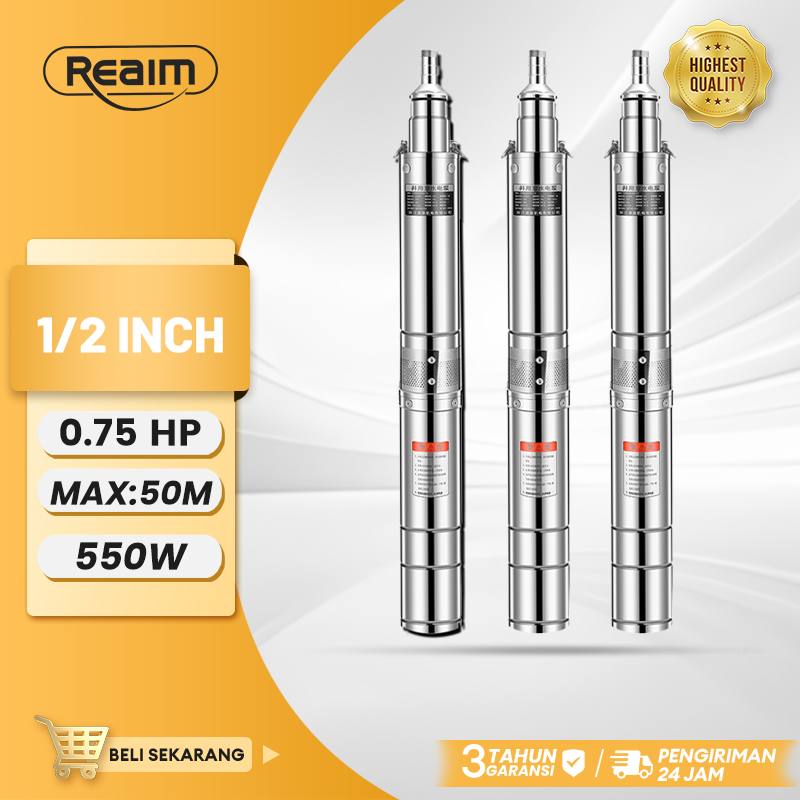 REAIM Pompa Air Sumur Dalam 0.75HP Submersible Pompa Kabel 25m Tahan Lama Untuk Rumah Tangga Irigasi