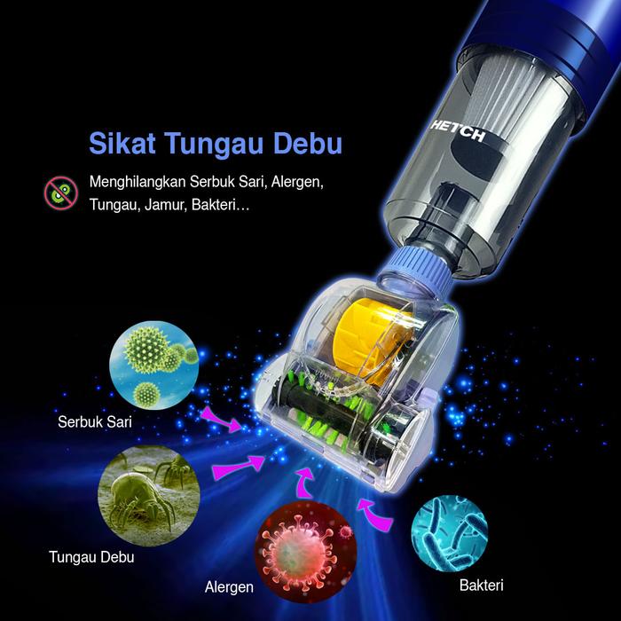 Hetch V3 Pro Hyper-Clean Handheld Dust Mite Bed Vacuum Cleaner & Mop Penyedot Debu & Pel Hvc-1416-Hc Vakum Kabel Pel Air