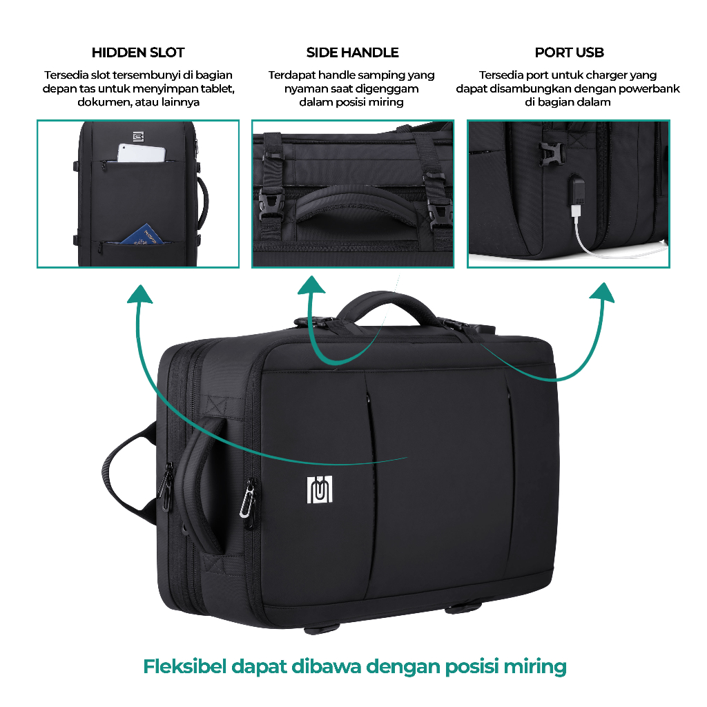 Bruno Cavalli Viaggio 18568 Tas Ransel Multi Fungsi 3in1 Gratis Rain Cover Ransel Laptop
