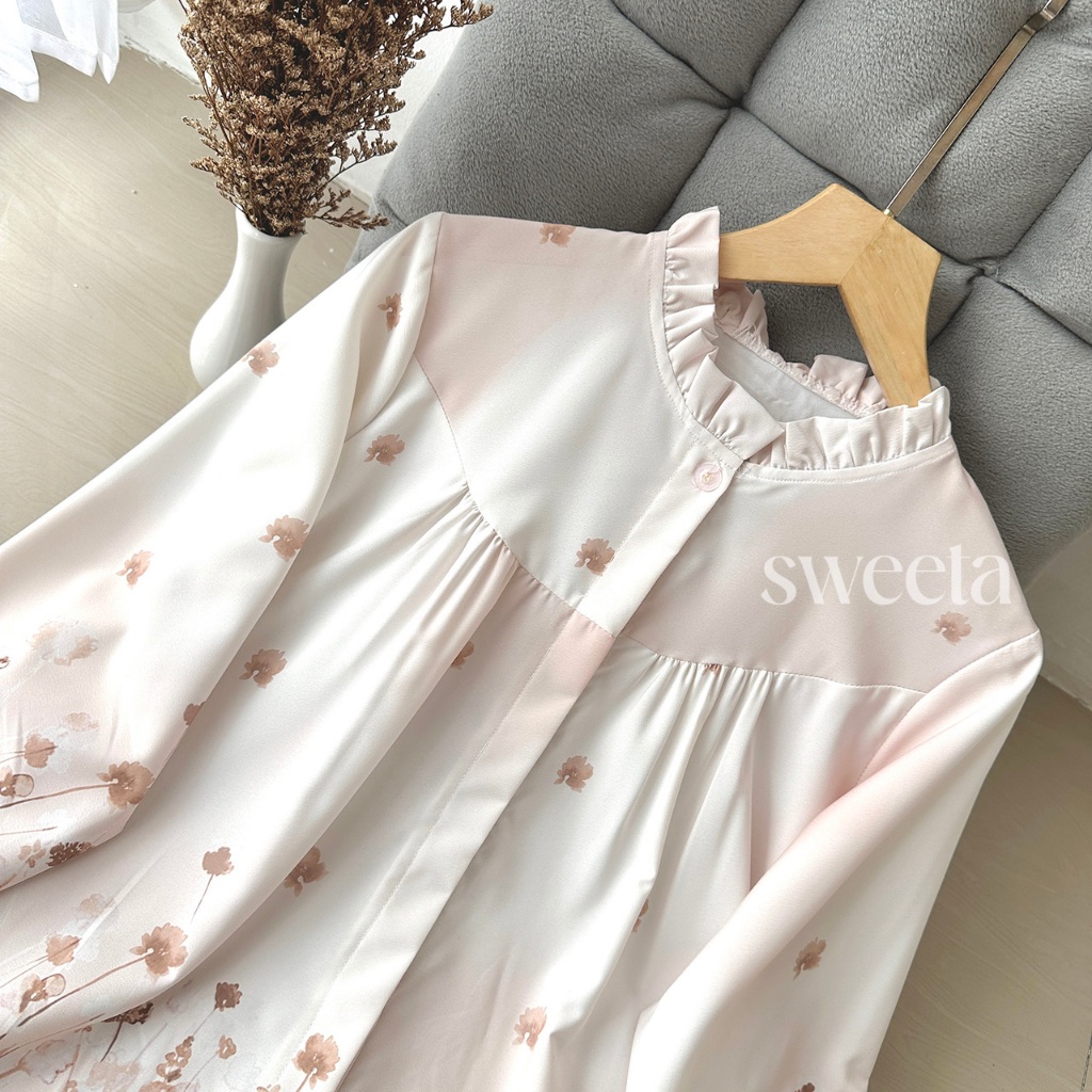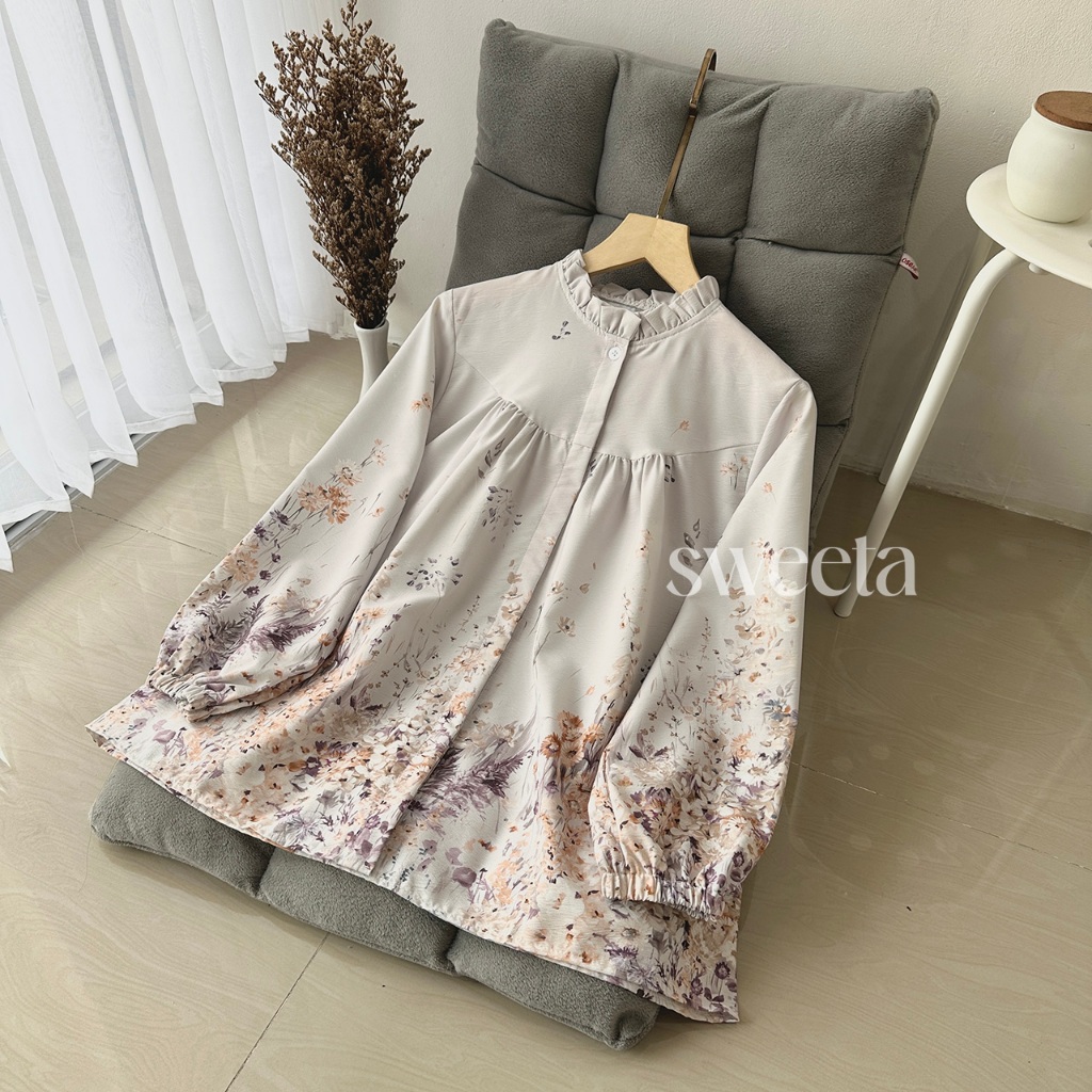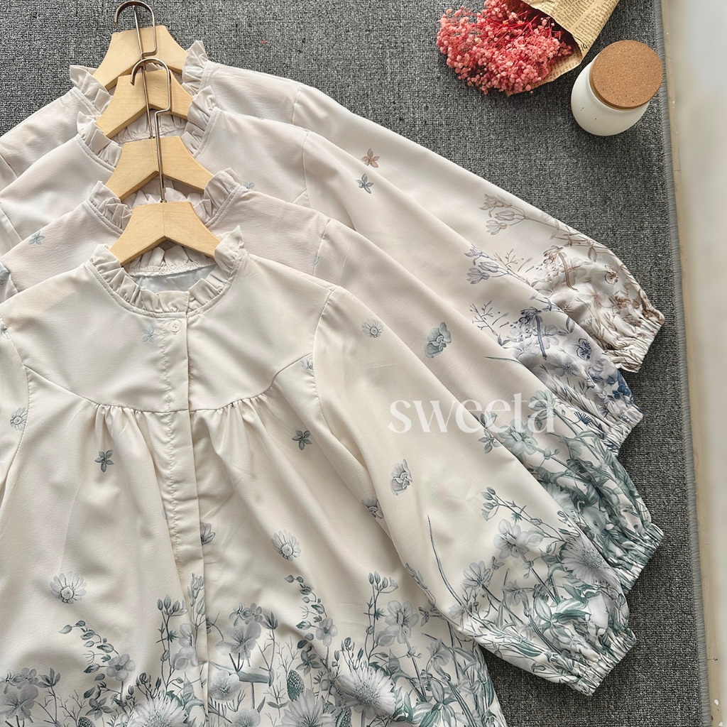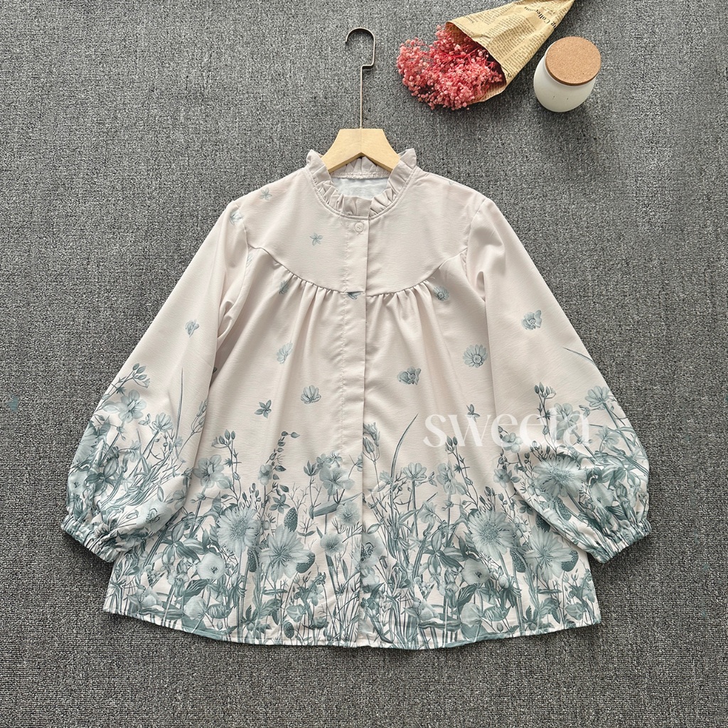 SWEETA | Blus U Rample Motif Flower | Silk Cotton | LD 115 cm | Korea Style | kancing dapat dibuka | Atasan Pakaian Wani
