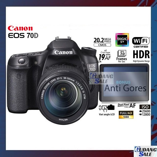 [NEW] KAMERA EOS CANON 70D + LENSA 18-55 STM Wifi -GARANSI 1 TAHUN - FREE ACCESORIES CAMERA DSLR VLOG 60D 6D 7D 80D