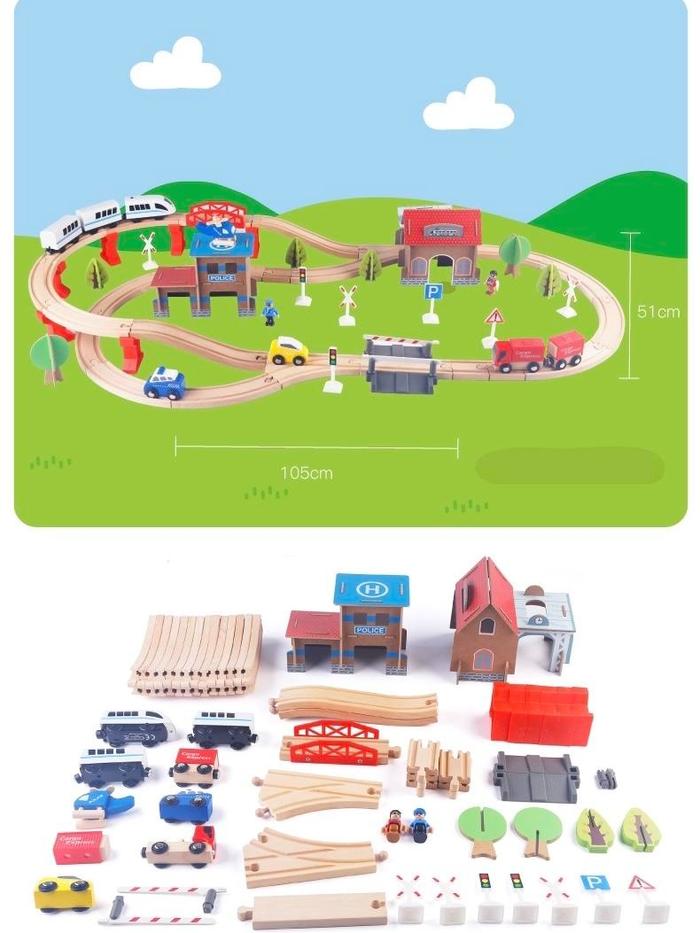 Wooden Train Track Set Building 88 Pcs Mainan Kereta Api Kayu Anak