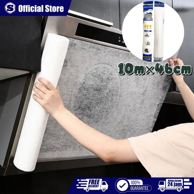 10 Meter x 46 cm filter cooker hood Lsan Kertas Penghisap Penyaring Penghilang Minyak Dapur Roll