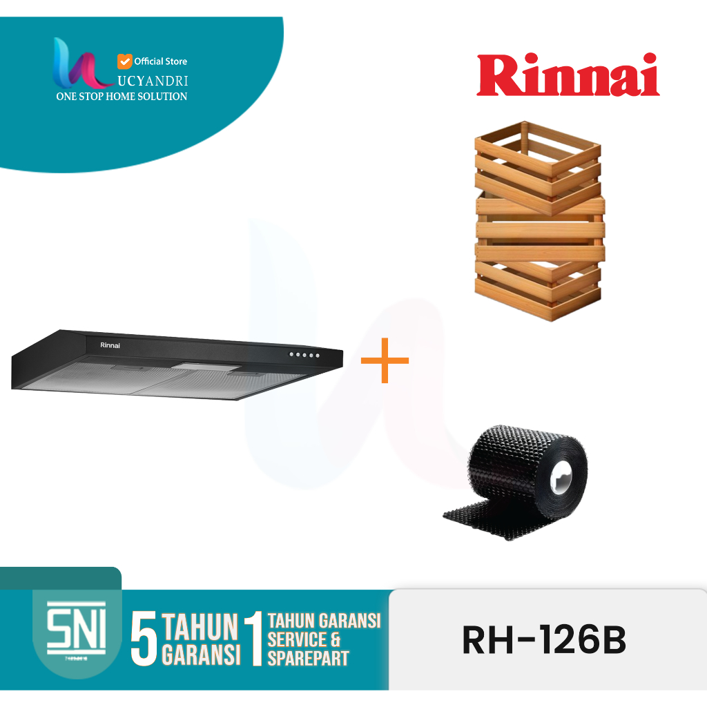 Cooker Hood Rinnai RH-126B | Penyedot Asap Dapur Slim | Hisap Asap Efisien | Hemat Listrik