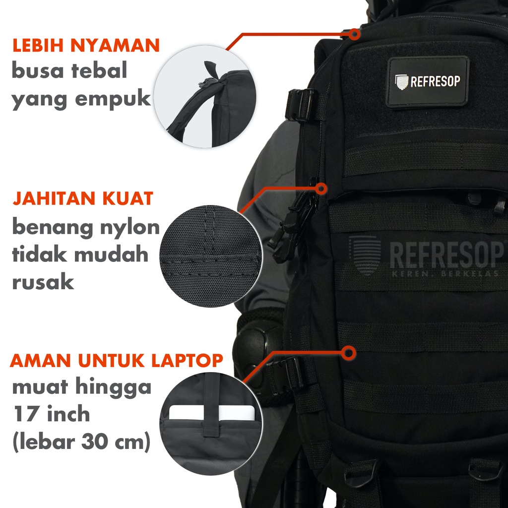REFRESOP Original PX680 Tas Army Pria Backpack Ransel Tactical - Hitam