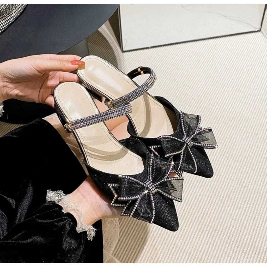 SANDAL HEELS WANITA ELEGAN VARIASI PITA BAHAN SINTETIS TINGGI 3 CM TERBARU KULITAS PREMIUM ORIGINAL