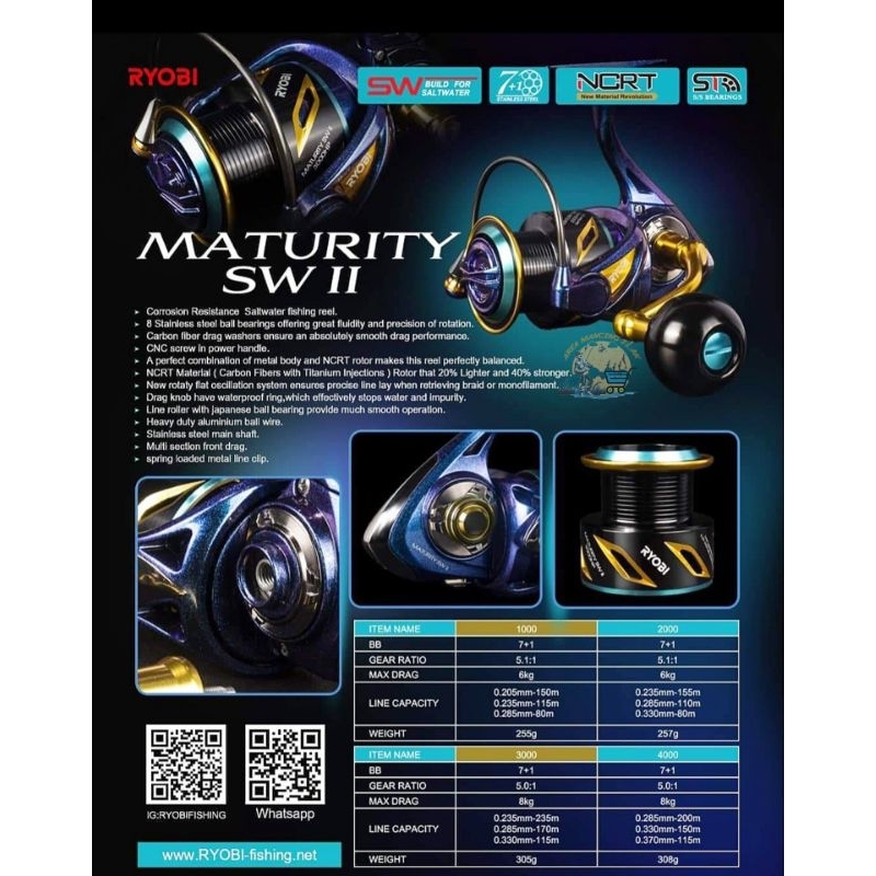 Reel Ryobi MATURITY SW II 1000 2000 3000 4000 5000 6000 8000 HPX