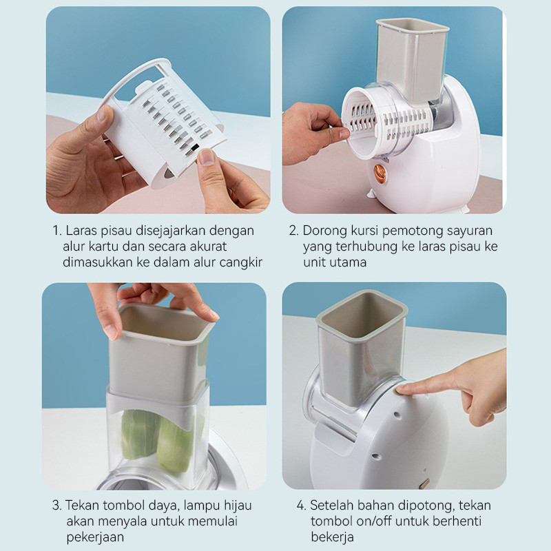 Pemotong Sayuran Drum 65W Otomatis Dapur Rumah Pemotong Sayuran Multi-fungsi Pemotong Sayuran Badai Mengiris Kisi Mesin