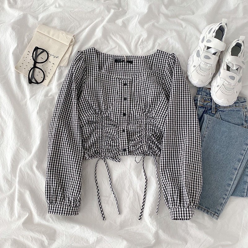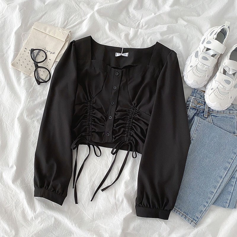 Vallina Outfit - Colyn Top Blouse Drawsting Croped Atasan Korean Remaja Wanita Premium