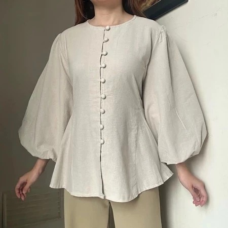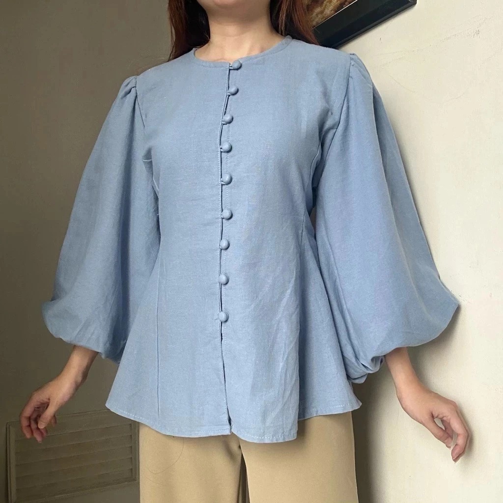 Astrid Top Atasan kemeja blouse wanita kerja linen tangan balon panjang korean style