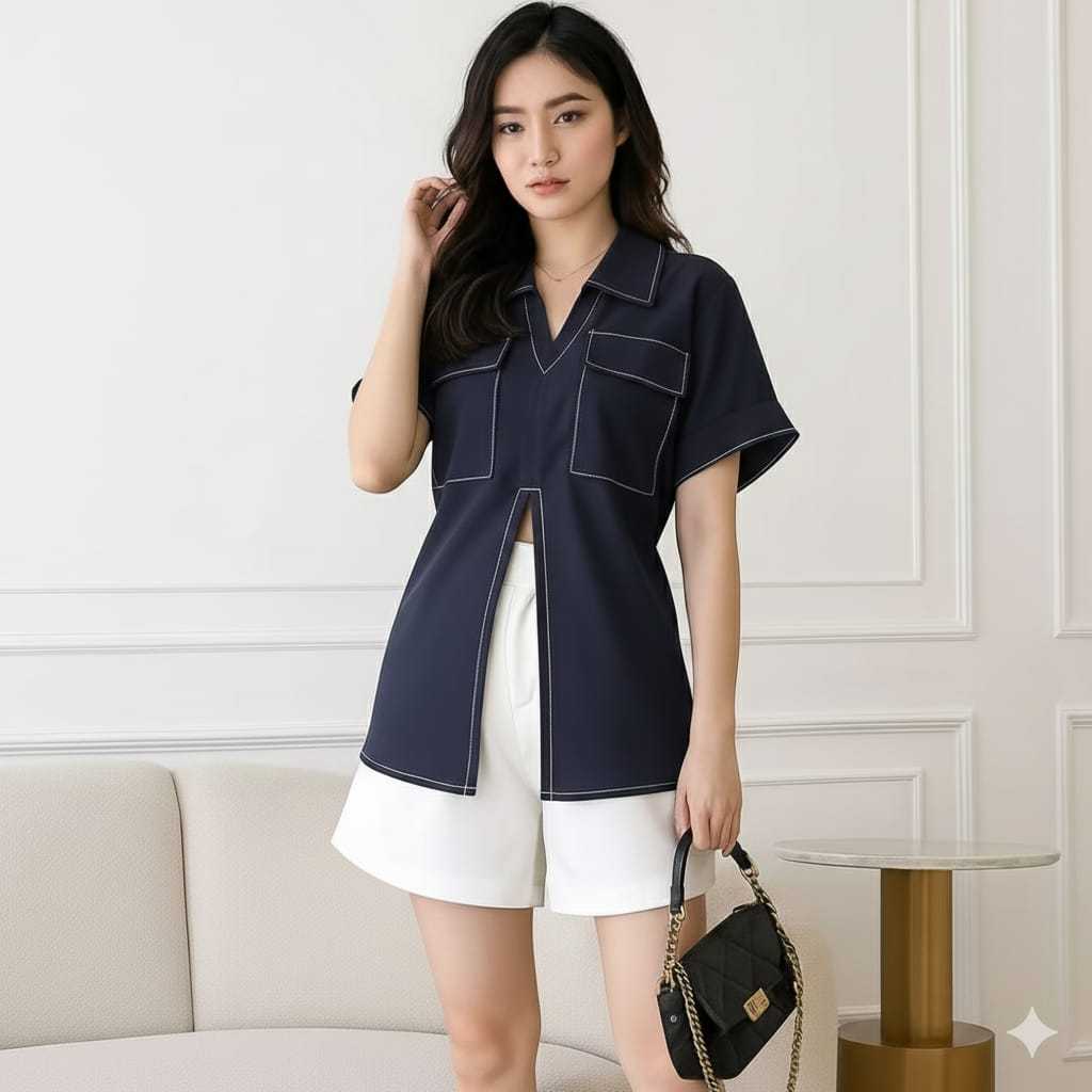 Vallina Outfit - Nikita Blouse Atasan Wanita Matt Katun Linen l Lengan Pendek OOTD Korean Style Casual Daily