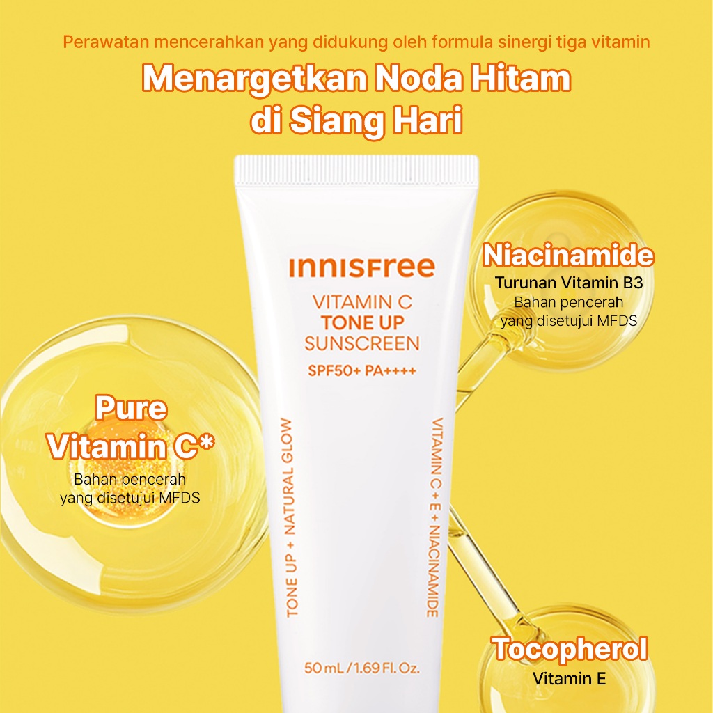 Innisfree Vitamin C Tone Up Sunscreen SPF50+ PA++++ 50ml - Tone Up Sunscreen Mencerahkan Wajah