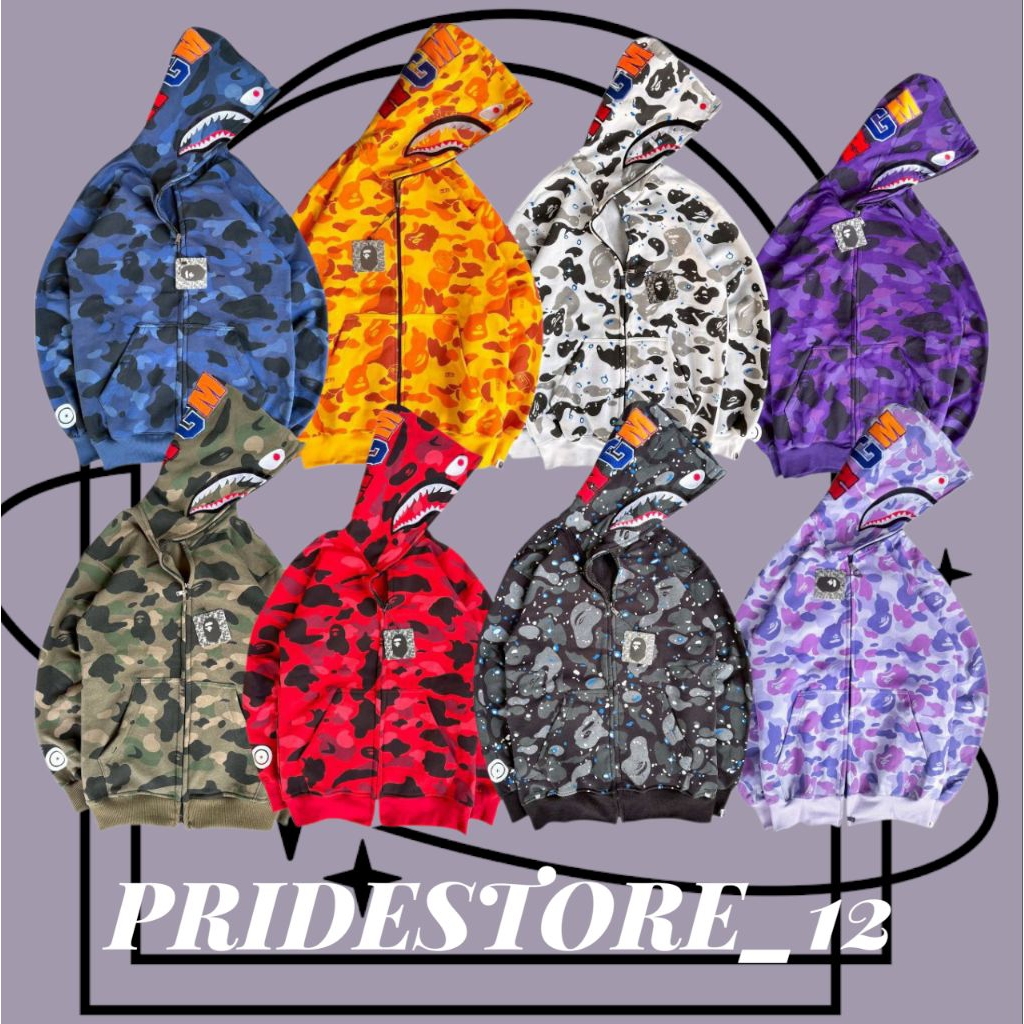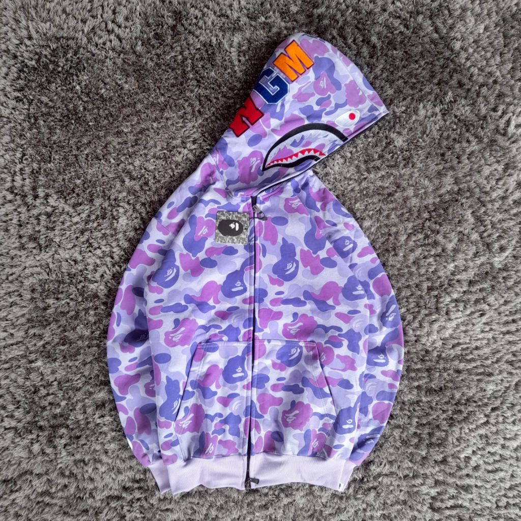 Hoodie double zipper Bape shark wgm fullprint fulltag terbaru dan terkeren