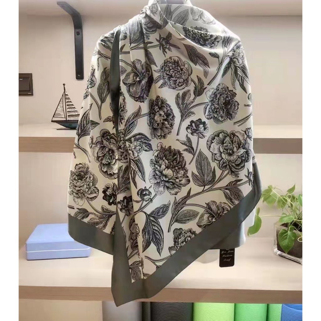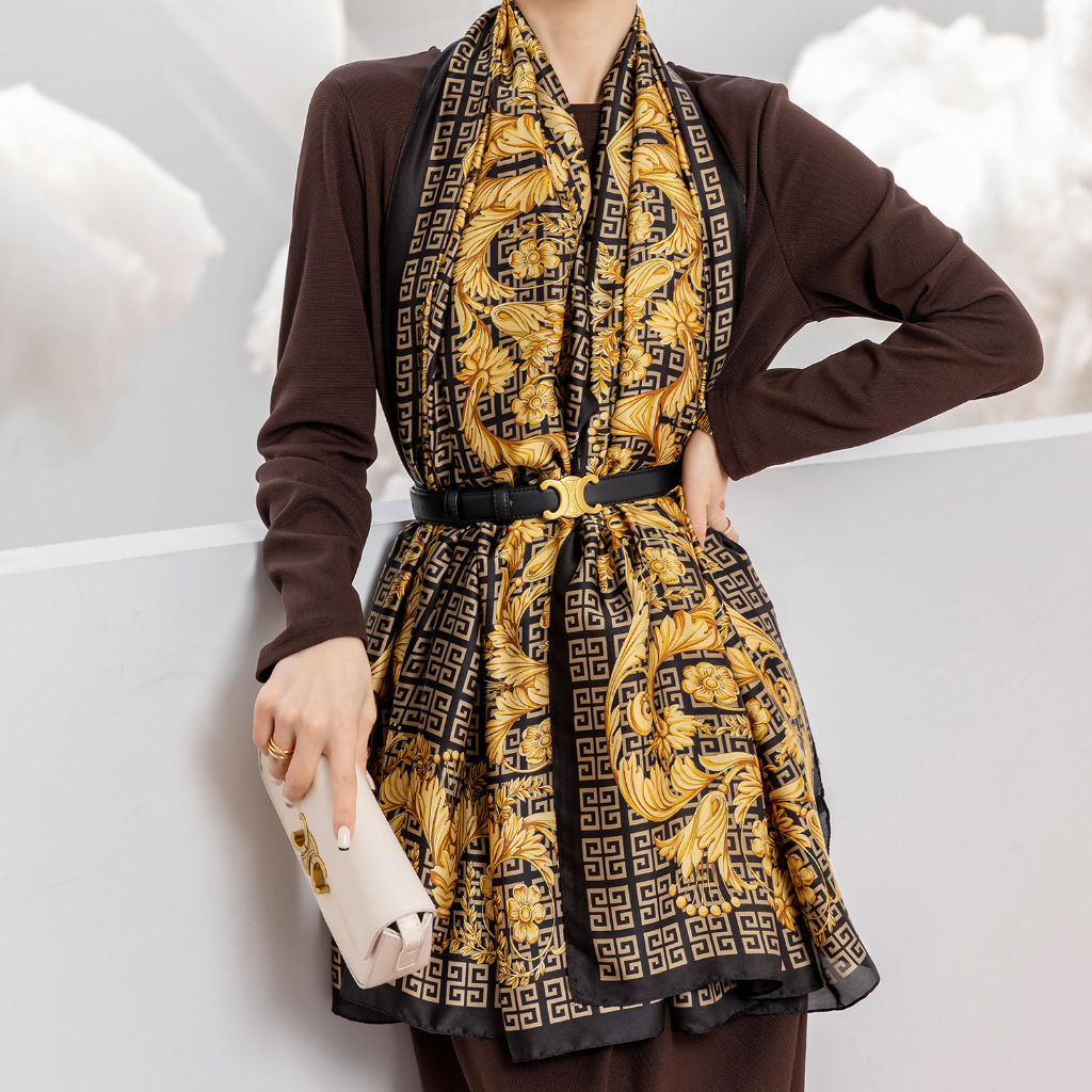 Syal Wanita Pashmina Lebar Silk Import Selendang Motif Sutera Long Scarf Huizi
