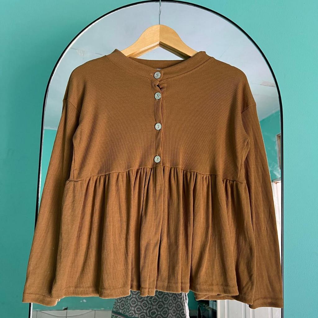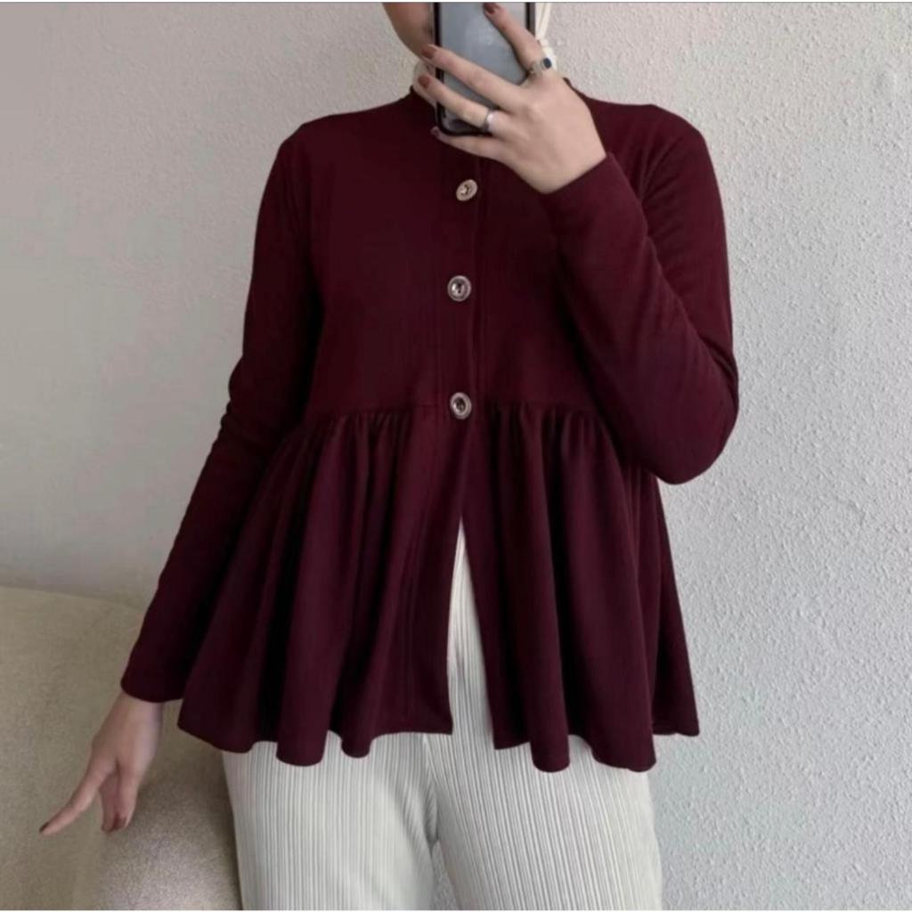 Blouse Peplum Wanita Knit Lengan Panjang Atasan Cardigan Terbaru Korean Style