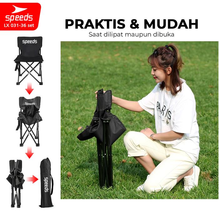 Speeds Set Kursi Meja Portable Lipat Camping Dan Outdoor Lainya Folding Chair + Table Set 031-36 - 2K Biru + Meja