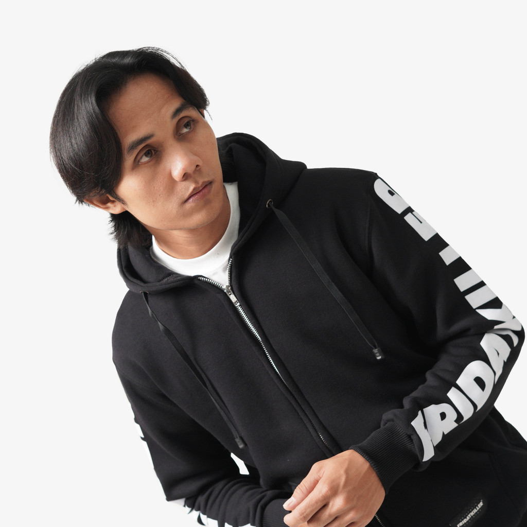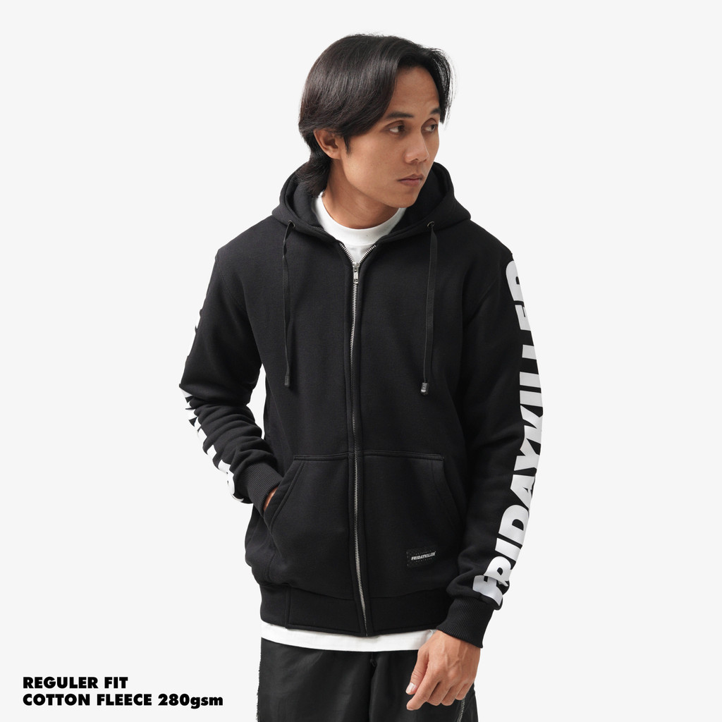 JAKET SWEATSHIRT ZIPPER HOODIE PRIA HITAM FRIDAY KILLER DELUXE | DX CORE 280 BLACK ZIP