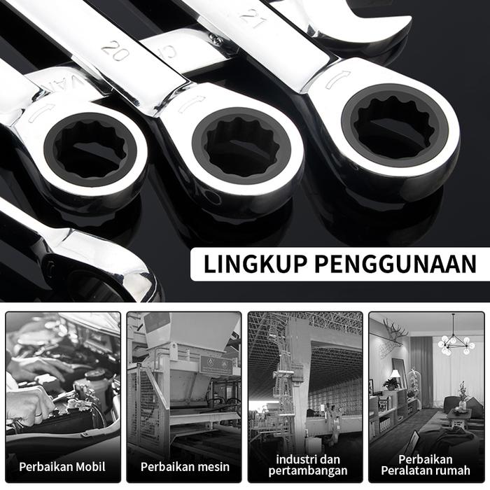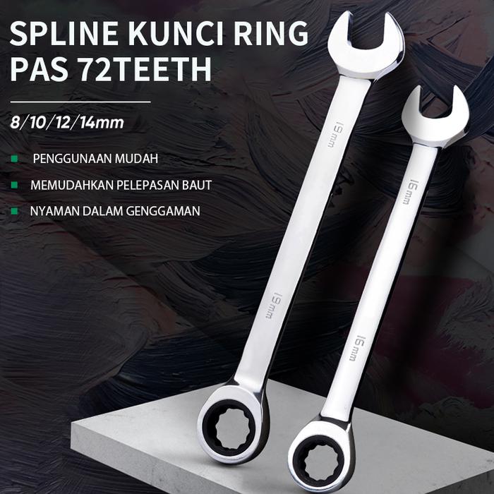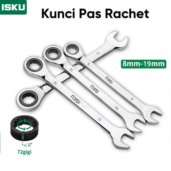 Isku Kunci Ring Pas Rachet 8 10 12 13 14 17 18 19Mm Besi Tahan Karat Bahan/Ratchet Wrench 72Gigi/Kunci Ring Pas Bolak Ba