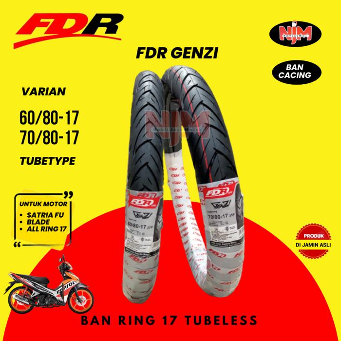 Ban Motor Bebek Ring 17 Tubetype Fdr Genzi 60/80 70/80 Ban Bukan Tubeless Honda Revo Supra Blade Kharisma Kirana Jupiter