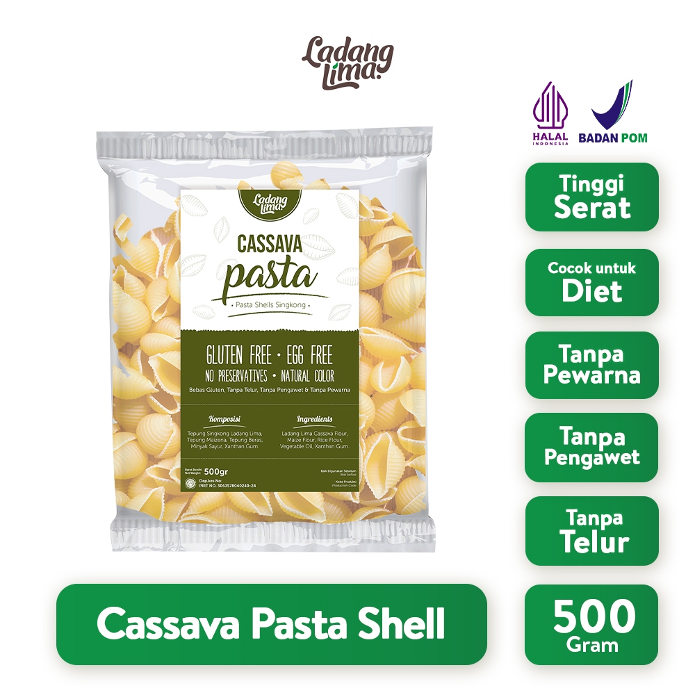 Pasta Shell 500gr - Ladang Lima Cassava Pasta Gluten Free With Protein