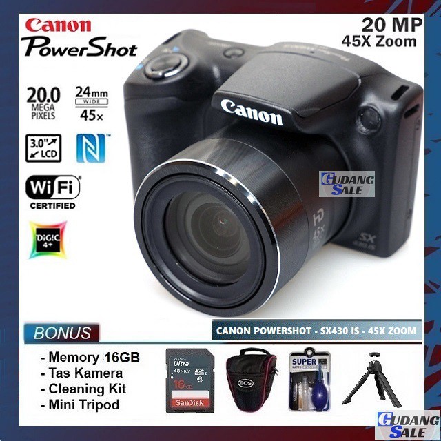 [NEW] KAMERA CANON POWERSHOT SX430 / SX 430 IS - GARANSI 1 TAHUN - CAMERA PROSUMER - L340 B500 H300