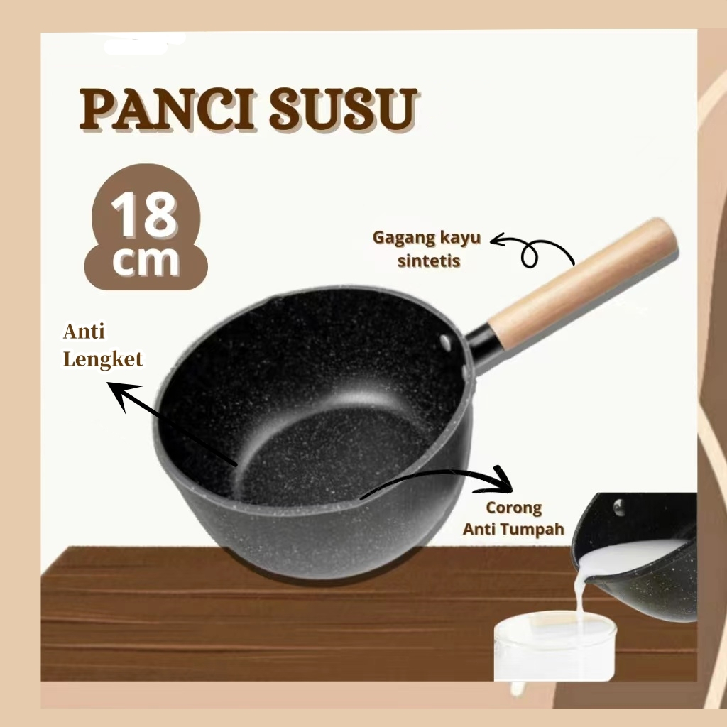 Panci Susu Hitam 18cm Panci Indomie Rebus Tumis Enamel Hitam Anti Lengket
