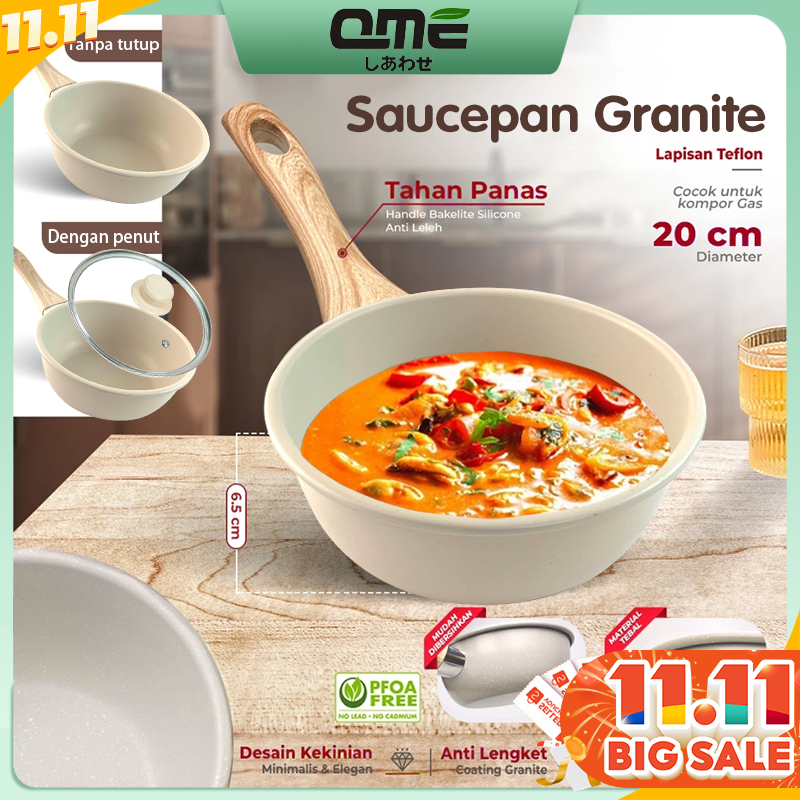 Deep Sauce Pan 20cm Granite Coating Anti Lengket