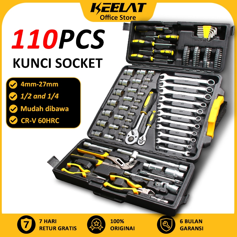 KEELAT 110PCS KUNCI SOK SET SOCKET FULL LENGKAP SOCKET TOOL KIT PAS RING MOTOR KUNCI SOCKET WRENCH PAS SOK SHOCK