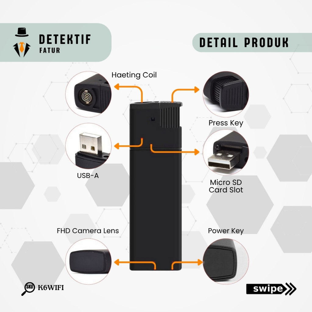 Hidden Spy Cam Camera Mini K6 lighter V8 Wifi Spycam Kamera Pengintai pengawas Tersembunyi K6WIFI