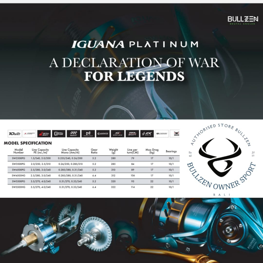 Reel Bullzen Iguana Platinum 2500-5500H /reel pancing /reel spinning/Reel joran pancing / reel murah
