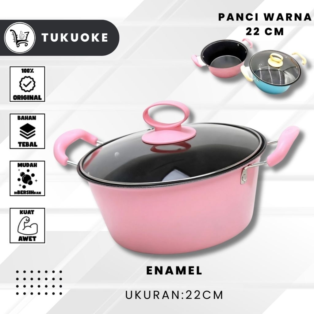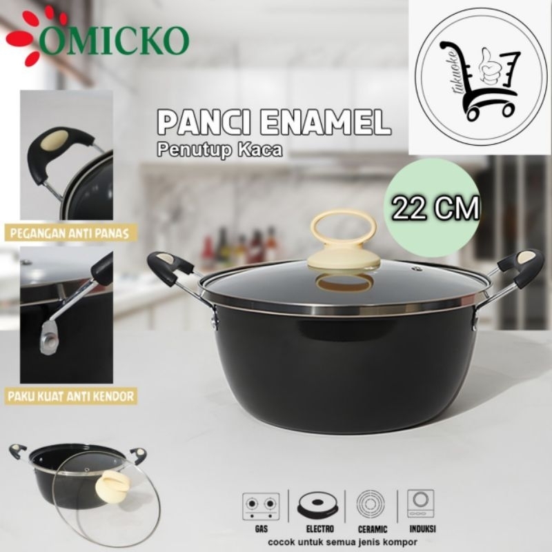 PANCI KUAH TUTUP KA SAYUR OMICKO 22CM / 24CM TUTUP KA WAJAN ANTI LENGKET Kuah Enamel Serbaguna Kualitas Bagus Murah