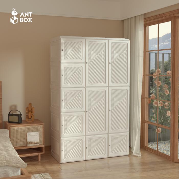 Antbox Lemari Pakaian Putih Susun Plastik Minimalis Lemari Baju - 8 Box 1 Hanger