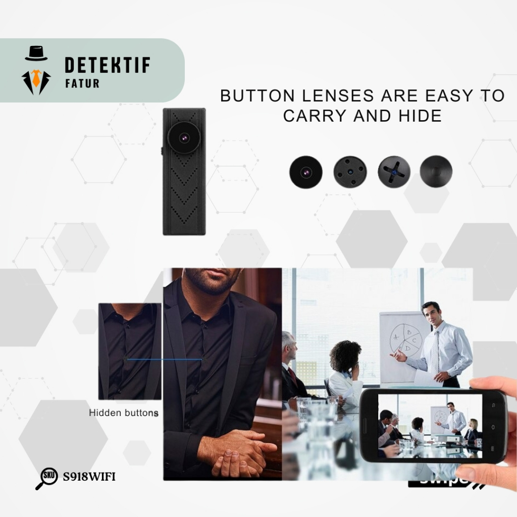 Kamera Kancing Pakaian Wifi Portable Full HD 1080P Spycam Camera Bentuk Kancing Tersembunyi S918WIFI