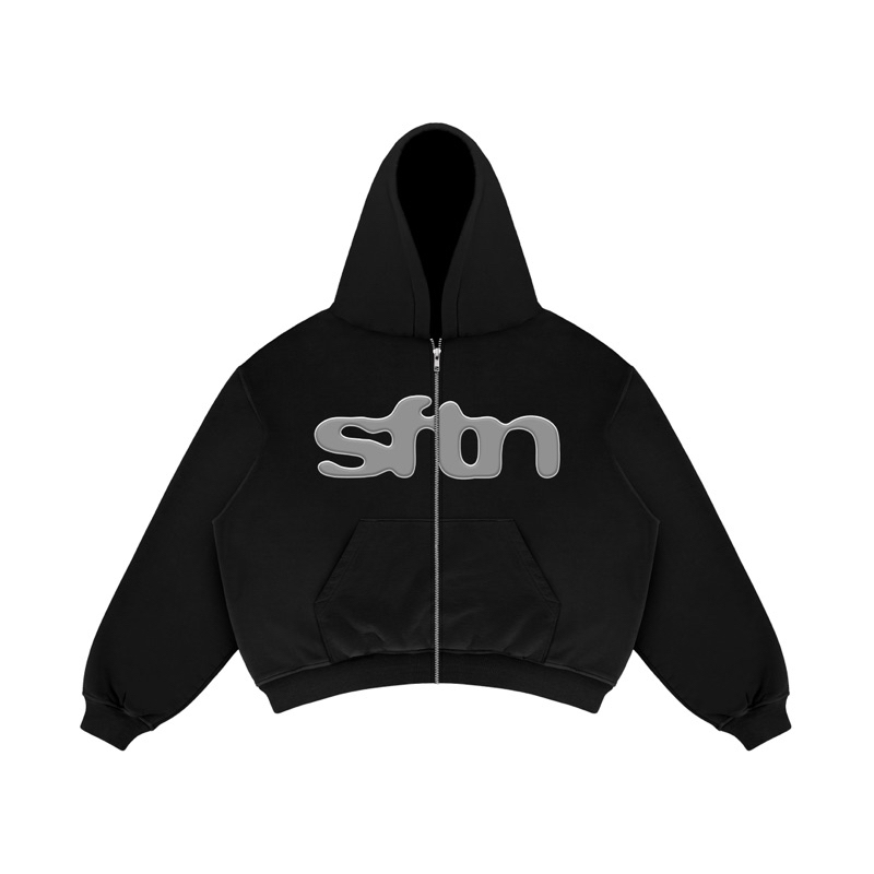 Satisfaction Hoodie Zipper Boxy 375GSM 8 Ball Puff Black